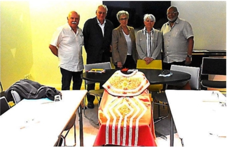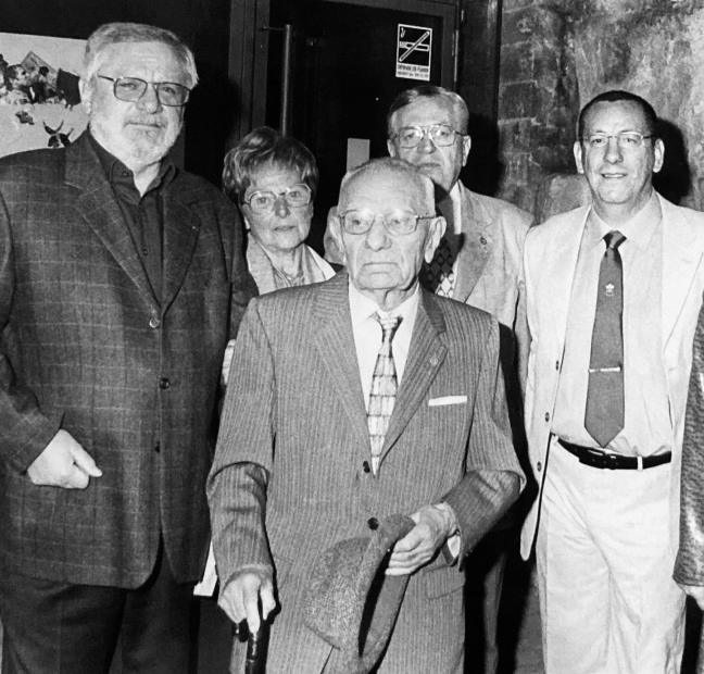 Photo 2 Renée Thomas entourée de quatre présidents de la Peña : Gilbert COPPENS. Adrien GAUTTIER, Éric Dolladille et Jean Thomas.